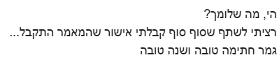 אתם מוזמינים לפנות אלינו בהודעה. נשמח לעזור!